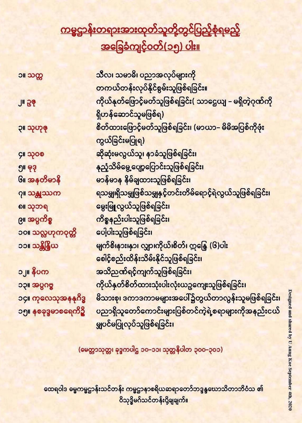 - ကိုယ်ကျင့် အဘိဓမ္မာ အခန်း(၆) ပုညကြိယာဝတ္ထု (၁၀)ပါး – မှတ်စုများ November 20, 2021