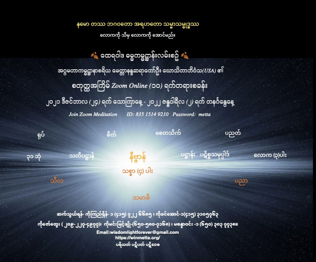 စတုတ္ထအကြိမ် Zoom Online (၁၀) ရက်တရားစခန်း။