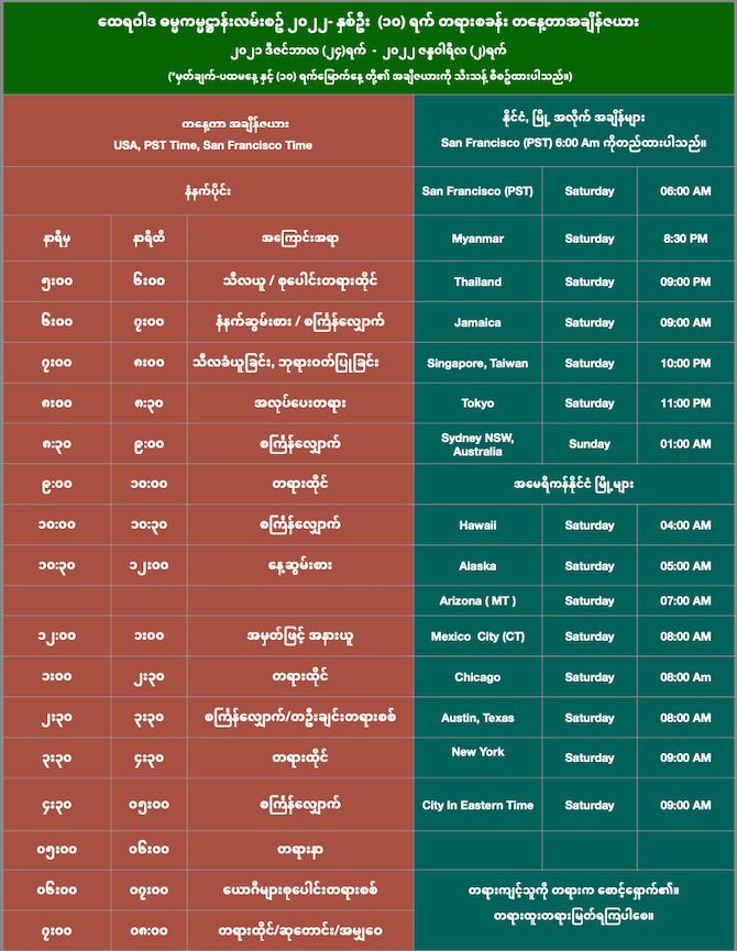 ပထမနေ့အချိန်ဇယား – Dec 24, 2021