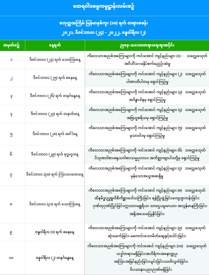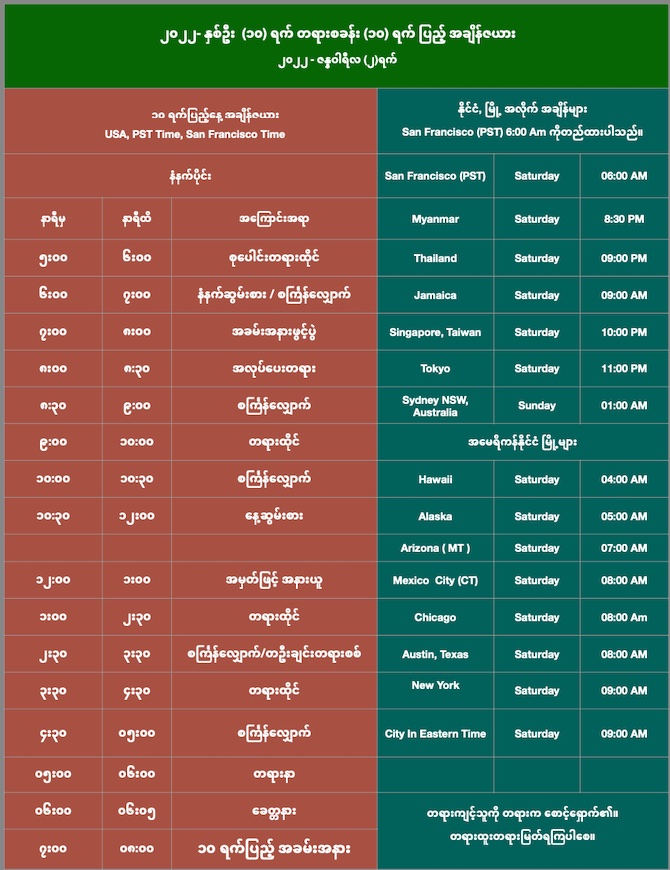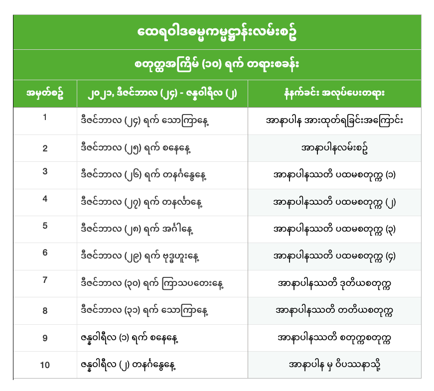 (၁၀)ရက်ပြည့်နေ့ အချိန်ဇယား- Jan 2, 2022