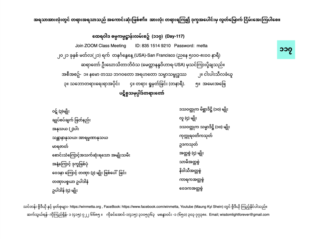 ထေရဝါဒ ဓမ္မကမ္မဌာန်း လမ်းစဥ် အပိုင်း(၁၁၇)