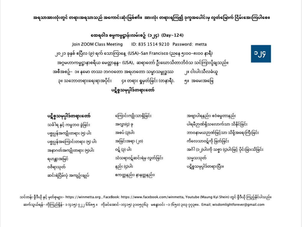 ထေရဝါဒ ဓမ္မကမ္မဋ္ဌာန်းလမ်းစဥ် (၁၂၄)