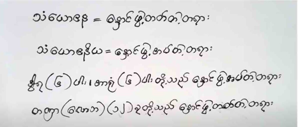 ဆရာတော် အဂ္ဂမဟာကမ္မဋ္ဌာနာစရိယ မေတ္တာနန္ဒဆရာတော်  ဦးဃောသိတာဘိဝံသ (မေတ္တာနန္ဒဝိဟာရ, Califorina, U.S.A.) မှ သင်ကြားပို့ချသည်။