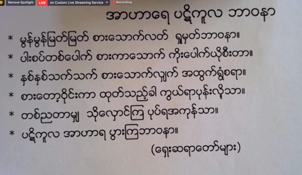 အဘိဓမ္မတ္ထသင်္ဂဟကျမ်း ကမ္မဋ္ဌာန်းပိုင်း (၃၂) July 10, 2021 / ညနေ သဘောတရားရေးရာအပိုင်း, ထေရဝါဒ ဓမ္မကမ္မဌာန်း လမ်းစဥ်, အဘိဓမ္မတ္ထသင်္ဂဟကျမ်း ကမ္မဋ္ဌာန်းပိုင်း ထေရဝါဒ ဓမ္မကမ္မဌာန်း လမ်းစဥ် အပိုင်း(၁၅၈) နမော တဿ ဘဂဝတော အရဟတော သမ္မာသမ္ဗုဒ္ဓဿ (သုံးကြိမ်) အာဟာရေ ပဋိကူလသညာစတုဓာတုဝဝတ္ထာန် သင်တန်း တရား ရှုမှတ်ခြင်း နှင့် တရားသိမ်းသင်တန်းမှတ်စုများ Downloads ဝိပသနာ လက္ခဏာ ၃-ပါး ဗုဒ္ဓအဘိဓမ္မာ အနှစ်ချုပ် – ဒေါက်တာ မင်းတင်မွန်Download ဓာတ်ကမ္မဋ္ဌာန်း – Dhatu KammatthanaDownload