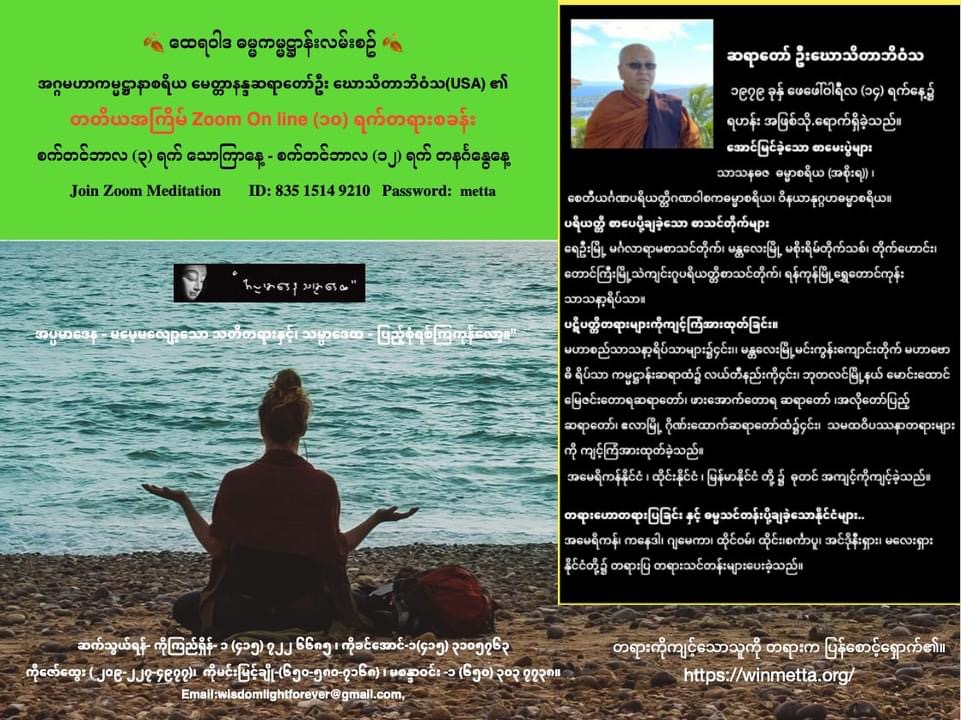 တတိယအကြိမ် Zoom Online (၁၀) ရက်တရားစခန်း
