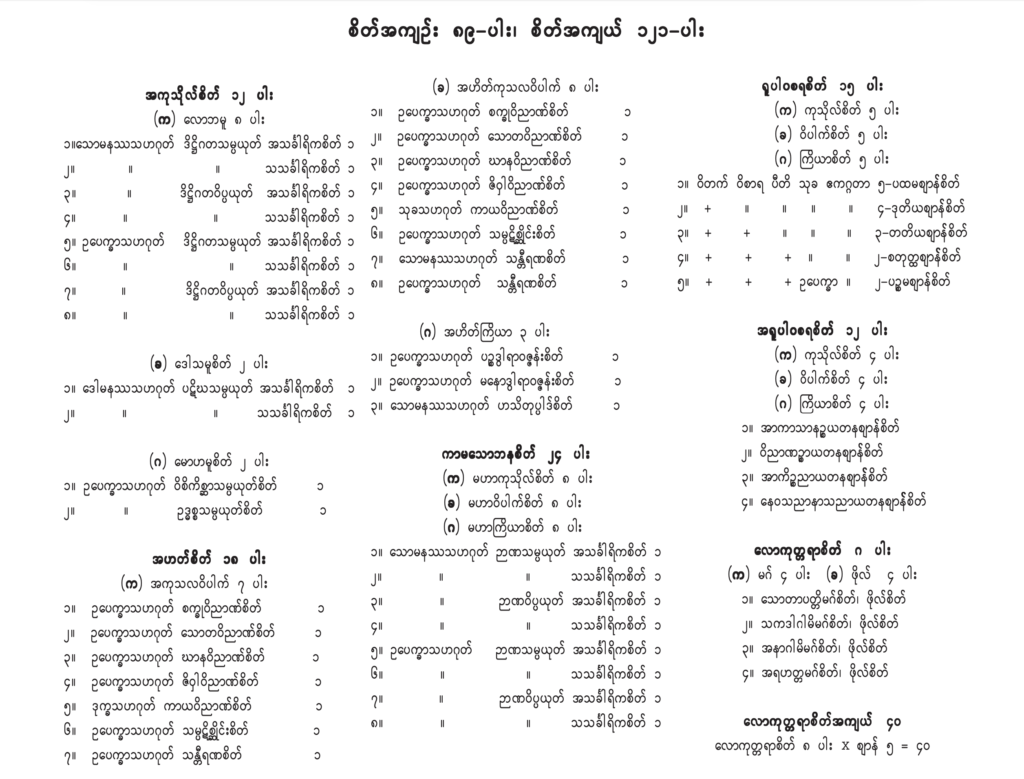 စိတ်အကျဉ်း ၈၉-ပါး၊ စိတ်အကျယ် ၁၂၁-ပါး